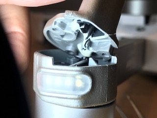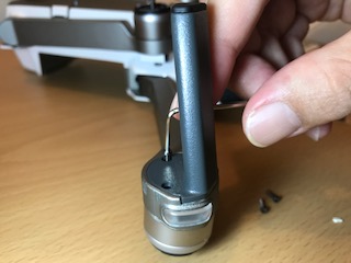 (損傷部品を外し、Mavic pro用の脚を取り付けます)